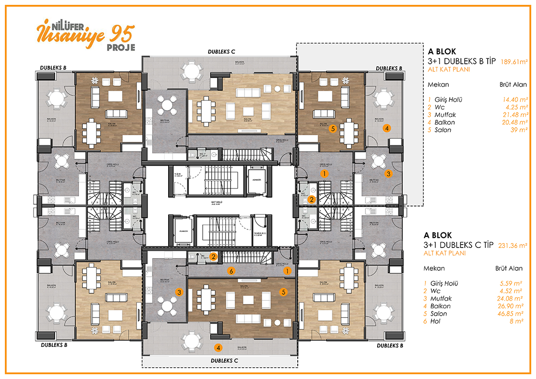 İhsaniye 95 büyüklükleri 80 ila 180 metrekare arasındaki farklı genişlikte daire tipleri ve 2+1 3+1 4+1 daire seçeneklerinden oluşuyor ve Aralık 2018 de sahiplerine teslim edilmesi planlanıyor.