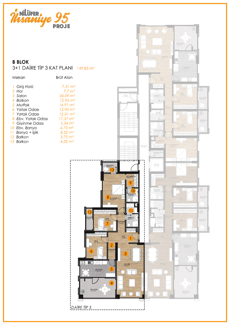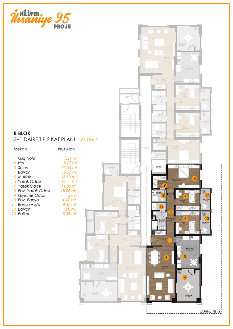 İhsaniye 95 büyüklükleri 80 ila 180 metrekare arasındaki farklı genişlikte daire tipleri ve 2+1 3+1 4+1 daire seçeneklerinden oluşuyor ve Aralık 2018 de sahiplerine teslim edilmesi planlanıyor.